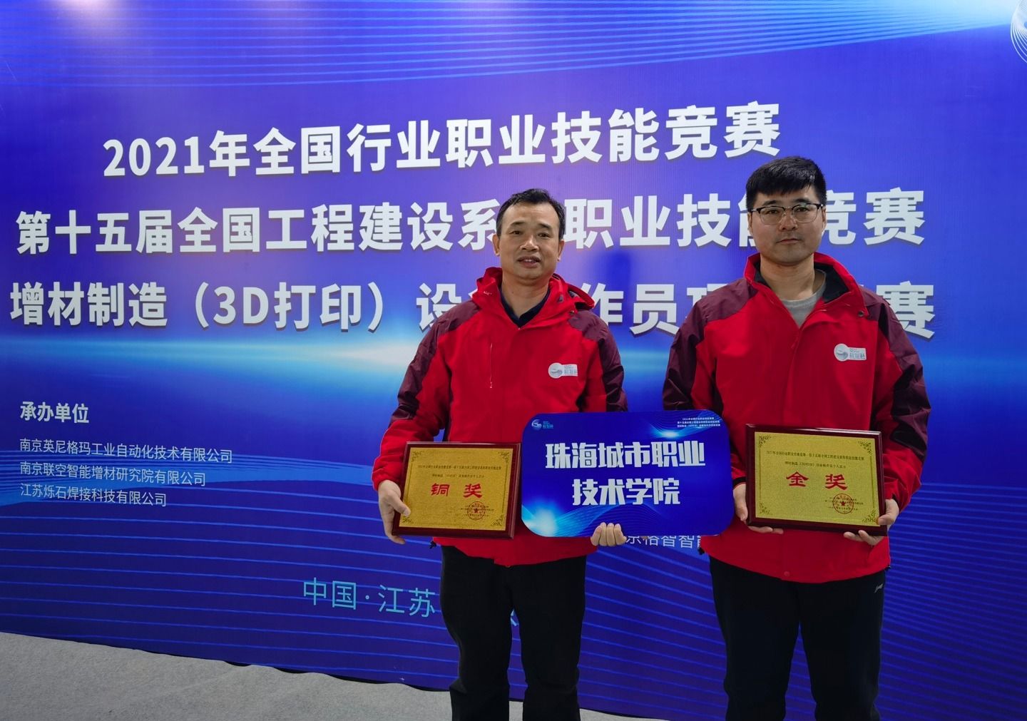 田增愿、李耀熙,第十五届全国工程建设系统职业技能竞赛增材制造(3D打印)赛项金奖(第二名)和铜奖(第八名)。